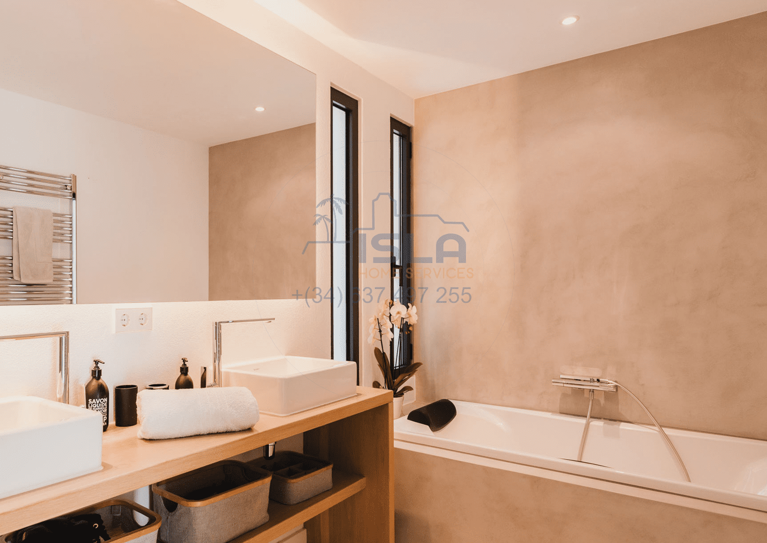 Es una casa de diseño funcional y totalmente equipada que combina el lujo y el confort mediterráneos y se encuentra en perfecto estado. El terreno es de 4.000 m2 y la superficie construida de la casa es de 335 m2. Distribuida en 2 plantas, tiene 5 dormitorios y 4 baños.